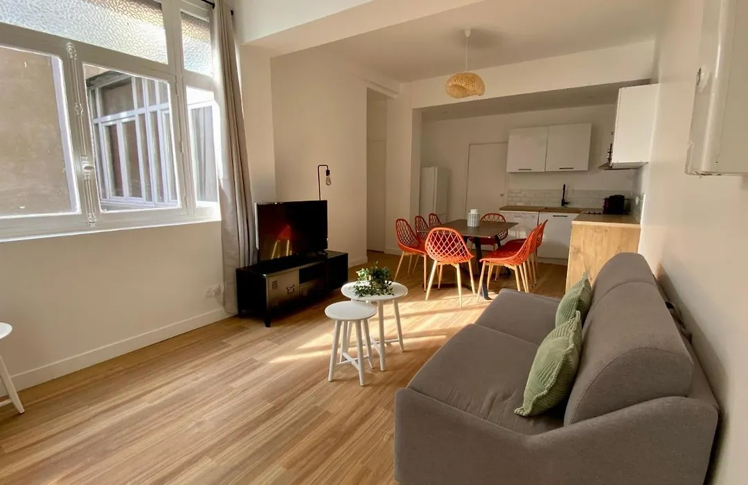The apartment is within easy reach of Gare du Nord Railway Station and is situated in the 9th arr. district of Paris. The wrought-iron lattice Eiffel Tower is located 2.9 miles away and Orly airport is located 13 miles from this apartment. Grand Palais is about a 10-minute drive away, while Immeuble Art-Nouveau is around 5 minutes' stroll from the property.